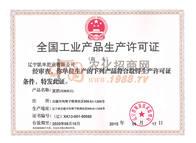 誠信、守信、對客戶負責的遼寧凱豐肥業(yè)有限公司,熱忱歡迎新老朋友光臨指導、洽談業(yè)務、攜手并進、共創(chuàng)輝煌。